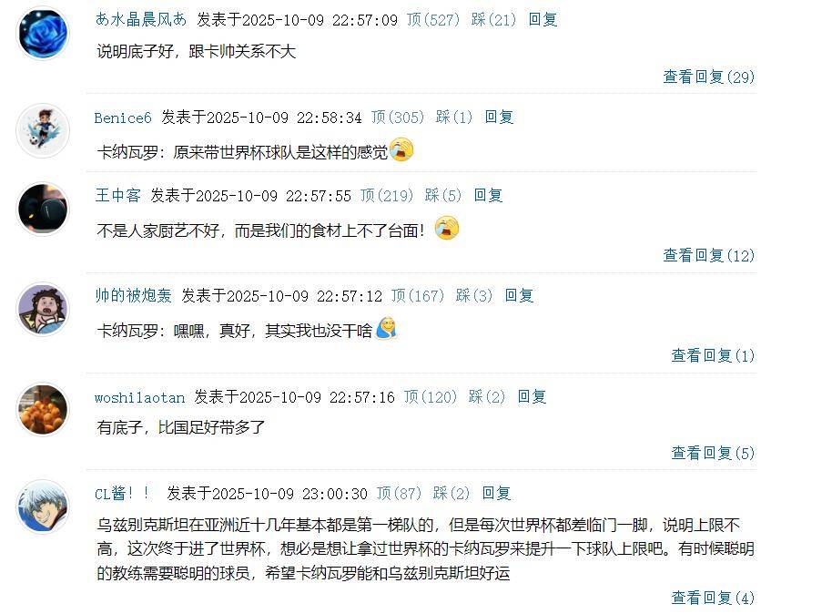 更有球迷分析,乌兹别克斯坦在近十几年一直算是亚洲顶级梯队,但要在世界杯上再进一步,往往在关键时刻缺少最后一脚。有人认为请来有世界杯经验的卡纳瓦罗,可能是为了提升球队的上限;也有人强调,聪明的教练需要聪明的球员,胜负最终还要看球队的配合和发挥。
