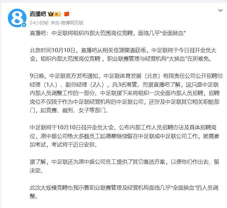 体育投注,体育投注平台,体育投注app,体育赛事,世界杯,奥运会,NBA,实时比分,体育新闻,欧洲杯,英超赛程,西甲赛程中国足坛近日再掀波澜,直播吧的重磅爆料引发了热议:中国足球职业联盟(中足联)将进行一场大规模的内部岗位竞聘,其力度之大,近乎于“全面换血”。这一消息瞬间点燃了球迷的热情,大家纷纷猜测,这究竟是中足联打破僵局、迎来新生的关键一步,还是仅仅流于表面、换汤不换药的姿态?这是否预示着中国足球的复兴之路即将开启?若此举能取得成功,未来进入世界杯是否会成为常态,国足在家门口就能看到世界杯的景象是否会成为奢望?