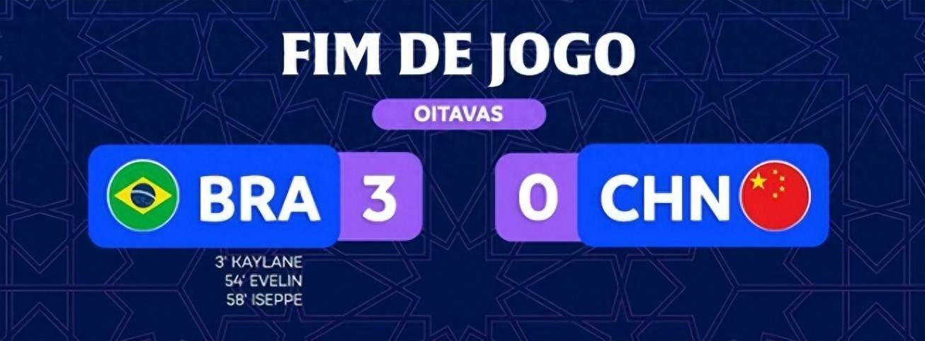 第85分钟,伊塞佩一脚兜射,球被牛子琪扑出。第87分钟,中国女足还在争取机会取得进球,徐悦头球攻门,球被门将神勇扑出,今天巴西队的门将表现太出色了。最终中国女足没有能够再取得进球,我们以0-3不敌巴西女足,无缘晋级8强。