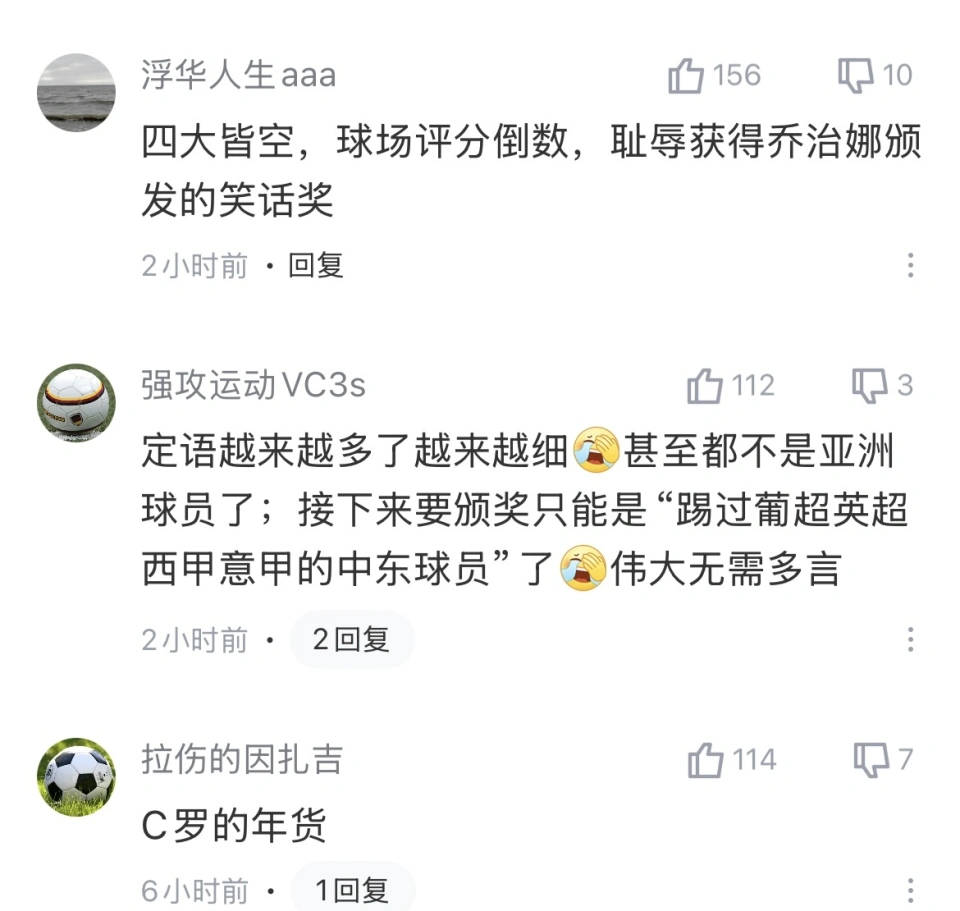 尽管官方和专业层面充分肯定了他的表现,但社交媒体评论区却战火纷飞:不少网友对C罗未能带队夺冠感到不满,“除了胜利无一斩获冠军”“评分榜倒数”“笑话奖”等犀利言辞充斥其间。有网友甚至直言,“这一切背后只有一个真理——没有冠军,个人奖毫无说服力。”他们认为,任何个人奖都应以球队荣誉为依托,否则意义大打折扣。