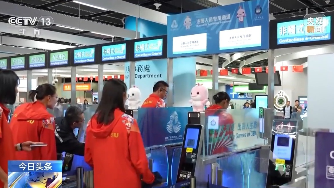 除了运动员比赛中的“无感通关”,多个口岸都为全运会打造了“绿色通道”,在香港,所有已登记的赛事注册人员,可以通过16条“专属出入境通道”,解锁7秒刷脸、丝滑通关的体验。