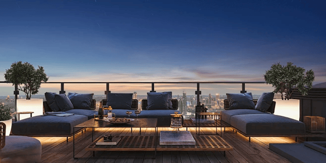 专属的空中露台,是超越物理空间的精神领地。TA让生活从室内向外无限延伸。清晨,于此手捧咖啡迎接第一缕曙光;午后,成为阅读冥想的静谧一隅;日暮时分,则可邀挚友举杯,共赏晚霞,直至城市灯火与星空交织成梦幻画卷。