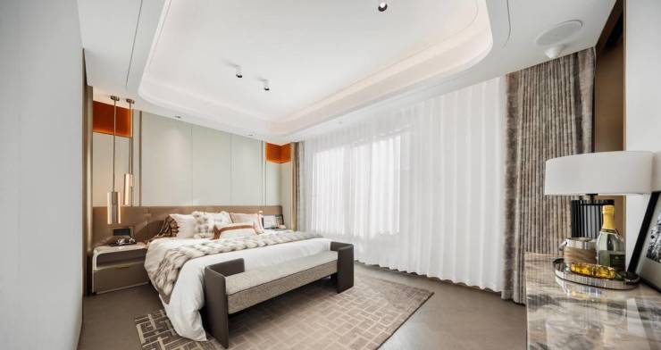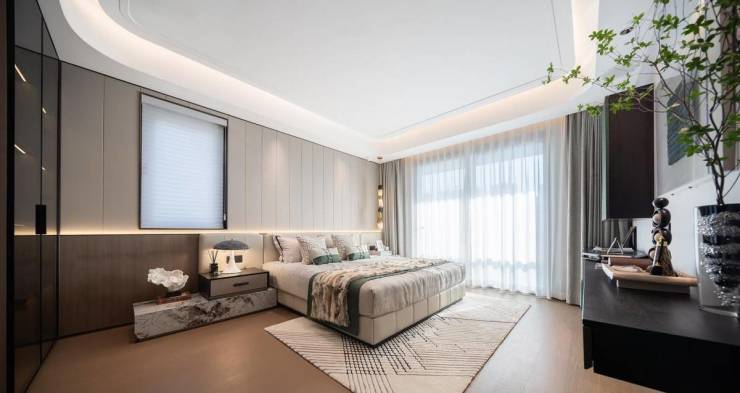 主卧套房面宽达约3.85m,空间感从容舒朗。精心规划的步入式衣帽间与卫浴豪华五件套空间,以人性化细节与高级审美,于细微处提升生活品质。功能分区明晰且和谐统一,在私密领域内实现便捷、舒适与格调的完美融合。